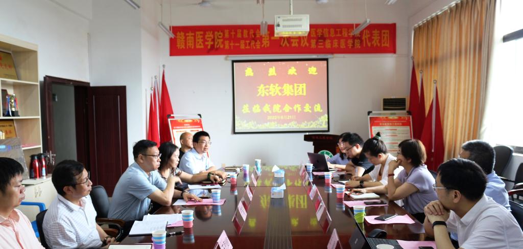 座谈会上,彭维杰对尹新一行的到来表示热烈欢迎,并介绍了学校基本情况和对产业学院的扶持政策;尹新作了东软大健康介绍及赣南医学院合作建议的报告;张鑫作了东软智慧医疗产业学院建设方案的报告。双方围绕人才培养、科学研究、产教融合和产业学院建设等内容进行了深入探讨,并达成了初步合作意向。