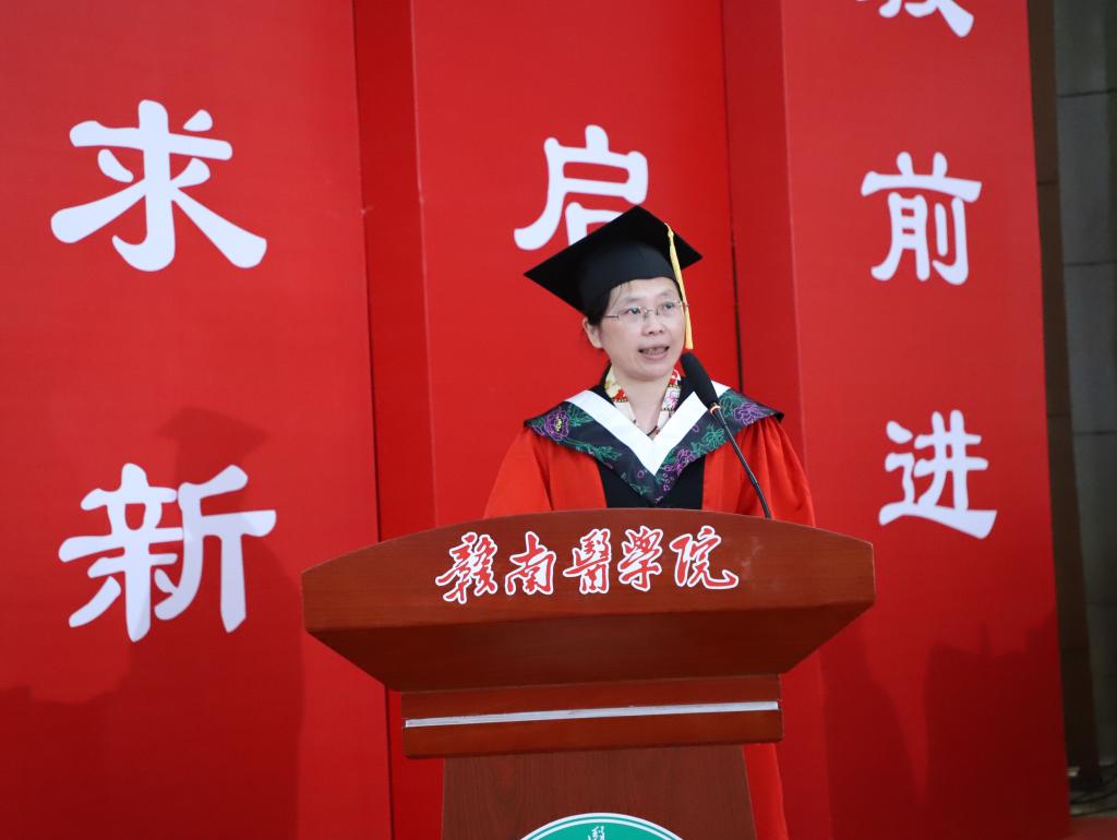 全科医学学院院长罗晓婷作为教师代表发言。希望毕业生能够坚持学习、勇于实践、不断进取。