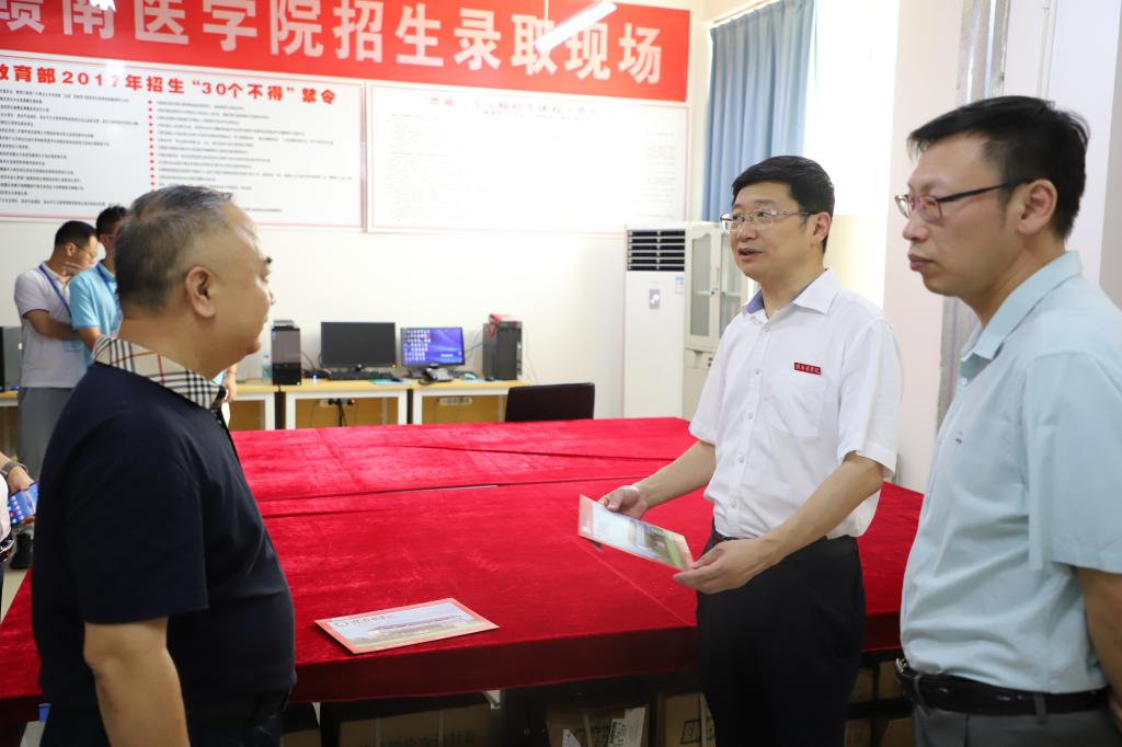 7月17日上午,学校党委副书记、校长张小康在党委委员、副校长彭维杰的陪同下,来到我校2022年高招录取现场指导招生录取工作,慰问暑期参加招录工作的工作人员。