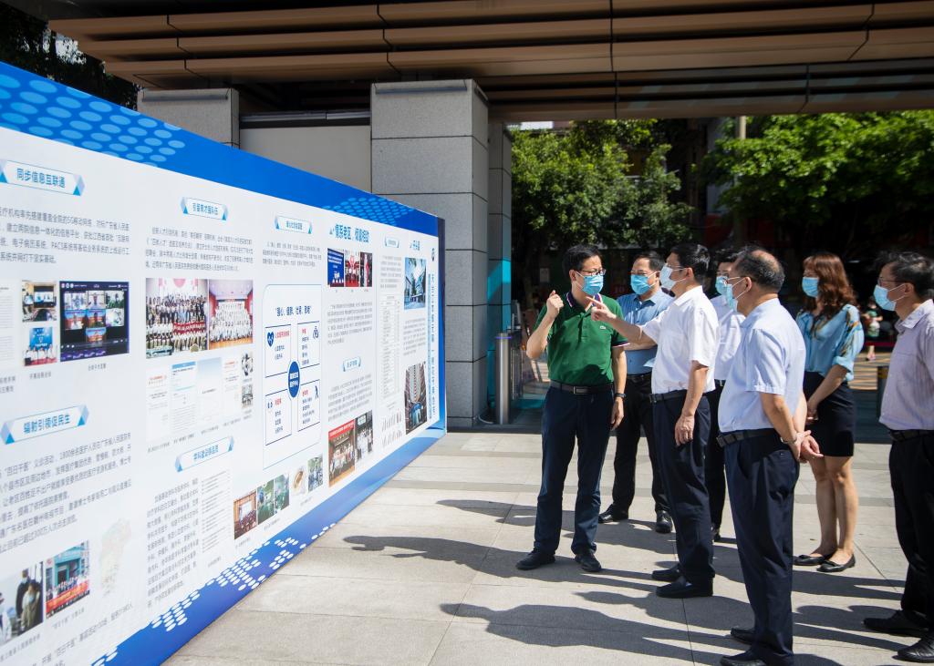 张小康一行首先参观了广东省人民医院赣州医院(赣州市立医院)国家区域医疗中心建设成果展览,听取了医院刘福生关于粤赣两院合作共建历程及成果的简要介绍。