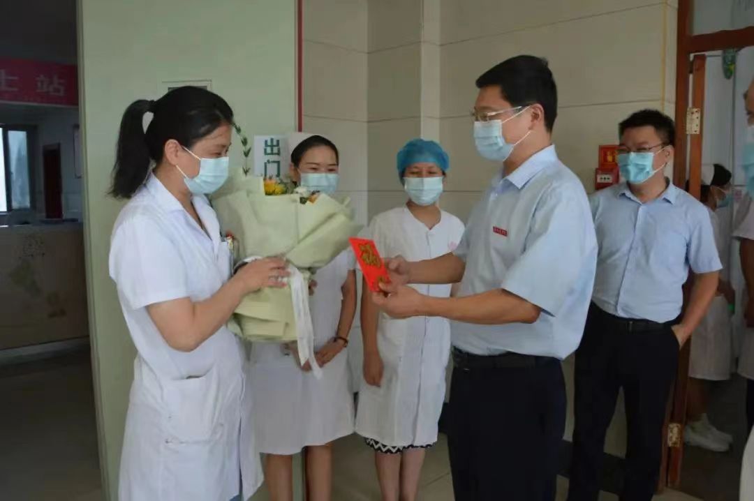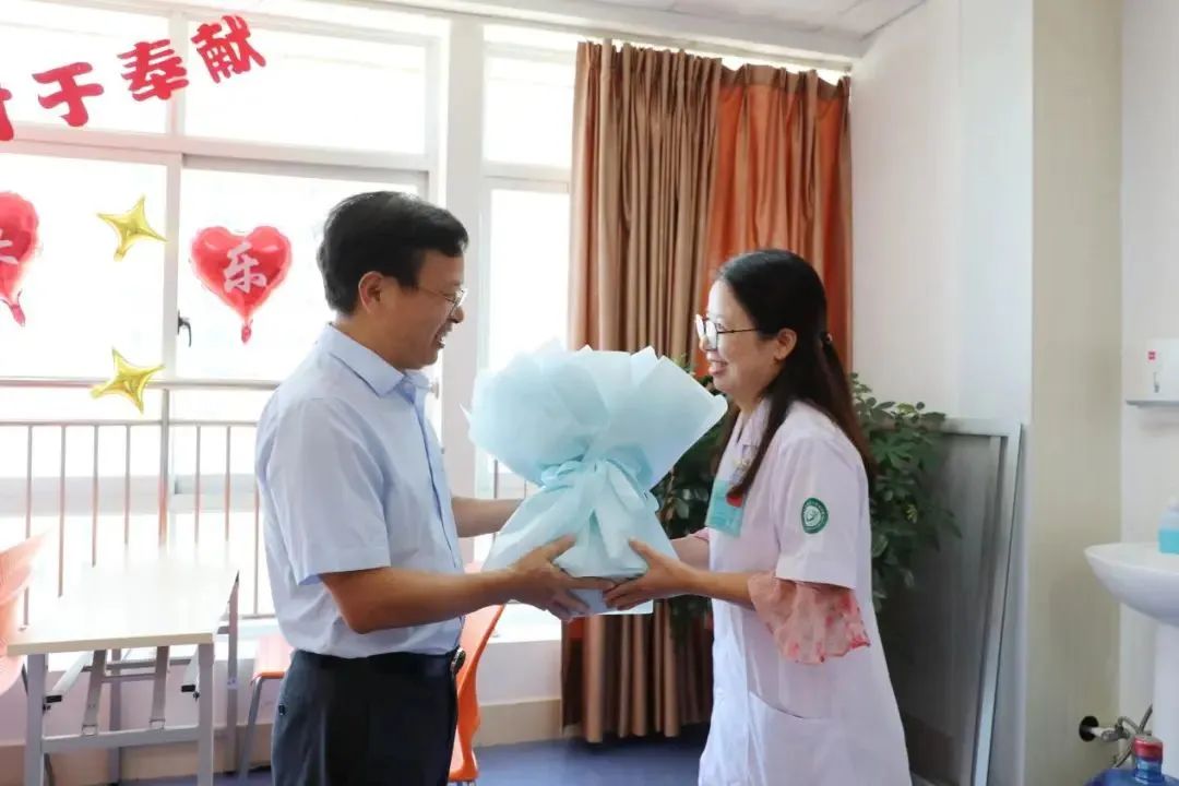学校党委副书记曾泽鑫代表学校党政到第二附属医院走访慰问,为一线医师代表送上节日鲜花及慰问金。学校工会主席钟美珠,党办、校办副主任刘乐亮等陪同走访慰问。