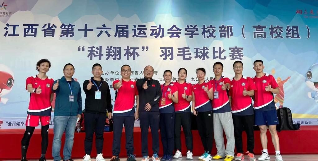 11月8日至18日,江西省第十六届运动会在九江举行,学校派出了51名运动健儿组成的代表队参加了包括武术套路(线上)、网球、羽毛球、田径、跳绳等学校部(高校组)的5个竞赛项目的竞赛。经过激烈角逐,我校代表队在相关项目比赛中获佳绩。