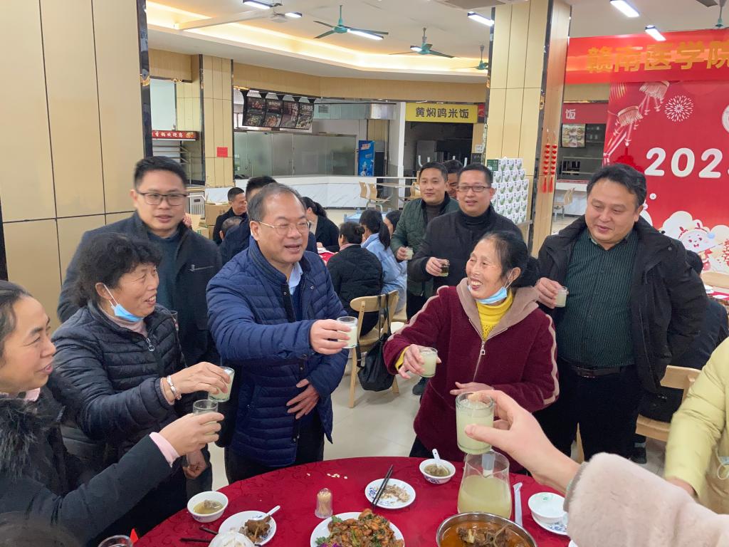 1月21日中午,我校在章贡校区餐厅举行留校学生团圆聚餐。学校党委委员、副校长叶军明与留校学生欢聚一堂、喜迎新春。