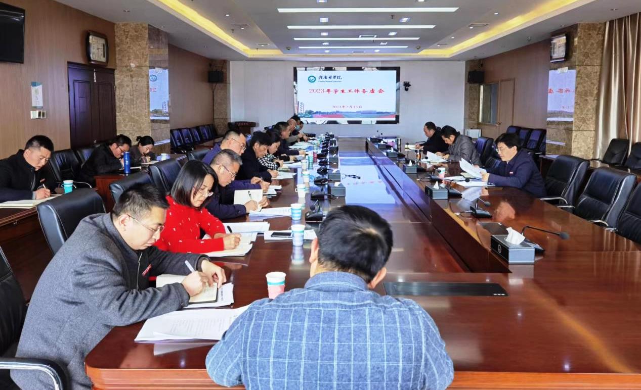 曾泽鑫指出,在学校党委的坚强领导下,全体学工干部凝心聚力,扎实工作,2022年学工系统各项工作稳步推进,取得了较好成绩,为学校事业的改革、发展、稳定贡献了学工力量。同时指出,在看到成绩的同时也要清醒地认识到存在的短板和不足,并对2023年学生工作提出了明确的目标要求。