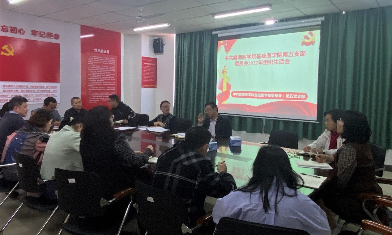 3月9日下午,基础医学院第五党支部召开了2022年度组织生活会。学校党委副书记曾泽鑫到会指导,该支部全体党员参会。
