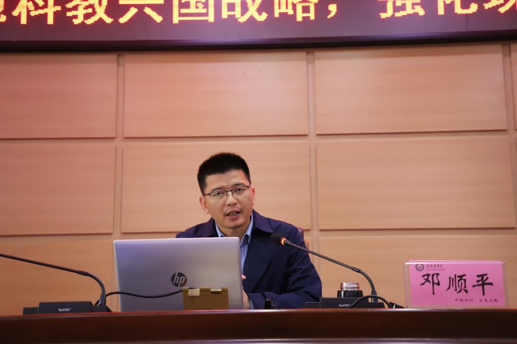 3月31日上午,2023年全校处级干部学习贯彻党的二十大精神专题研讨班继续进行,江西省委党校公共管理学教研部副主任、副教授邓顺平应邀到校作题为《实施科教兴国战略,强化现代化建设人才支撑》的辅导报告。学校党委委员、统战部部长赖传景主持。