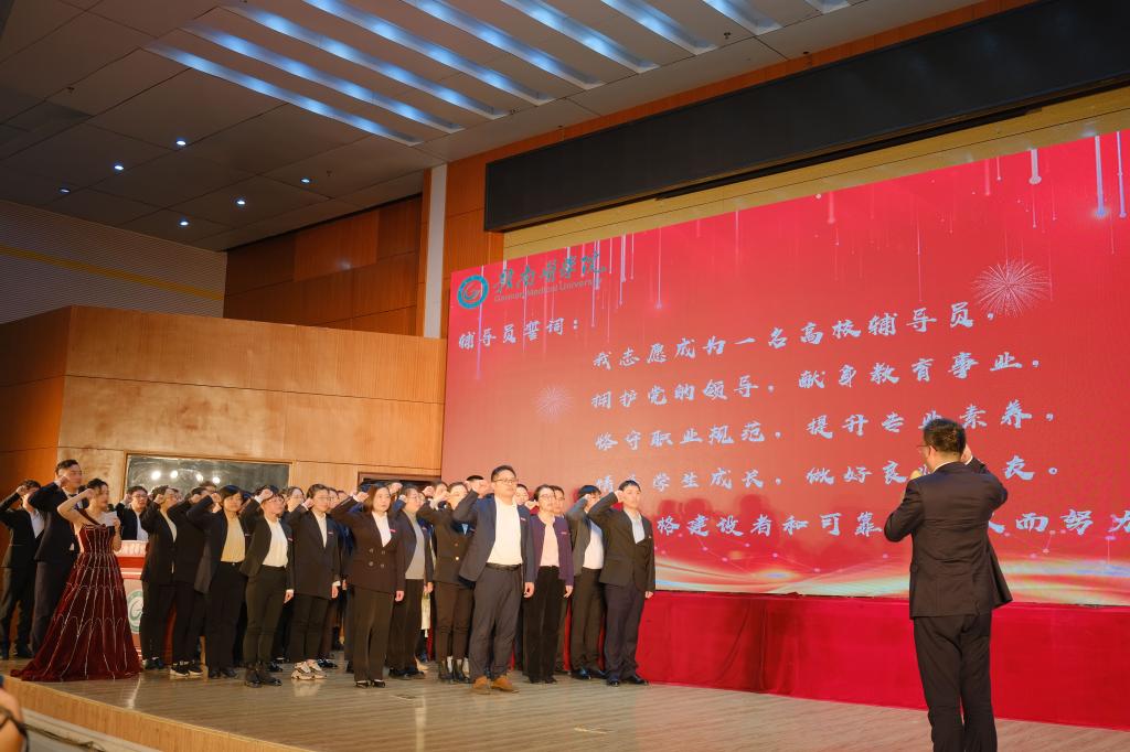 颁奖典礼在学生工作部(处)部(处)王建发的领誓下,全体辅导员集体重温辅导员誓词的庄严承诺声中落下帷幕。
