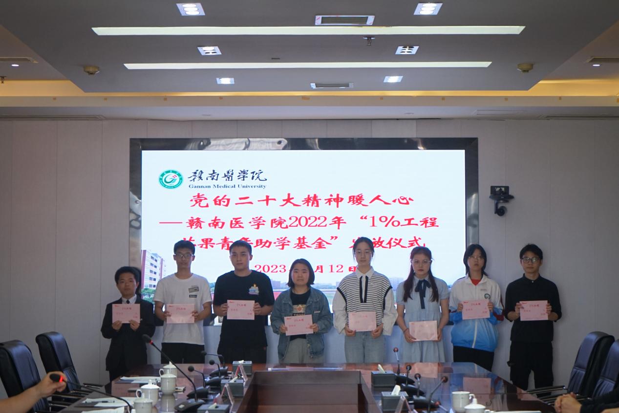 4月12日下午,“党的二十大精神暖人心”--赣南医学院2022年“1%工程·芒果青年助学基金”发放仪式在401会议室举行。