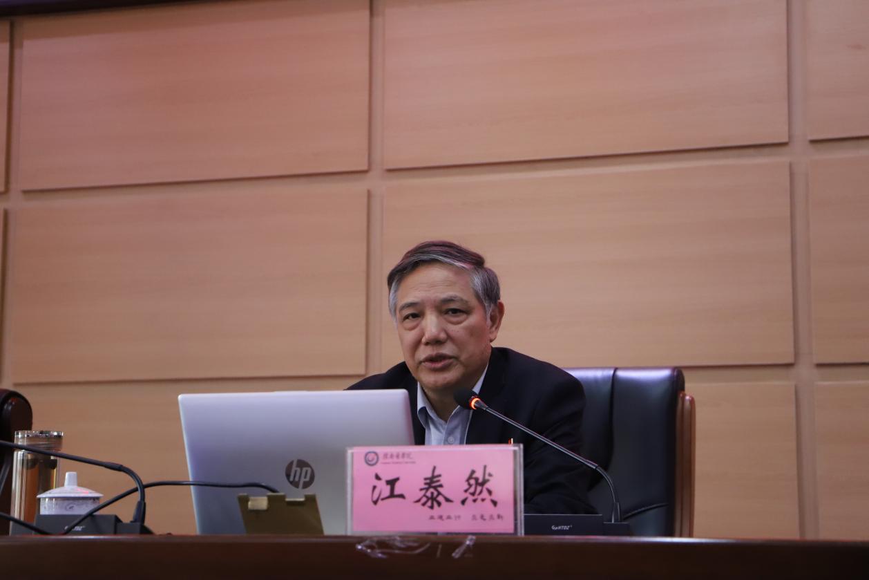 黄瑞忠在主持时希望,与会人员深刻领悟江教授的辅导报告,把理论学习成果转化为坚定的理想信念、转化为对党忠诚、转化为以人民为中心的发展思想,努力推动学校高质量发展。