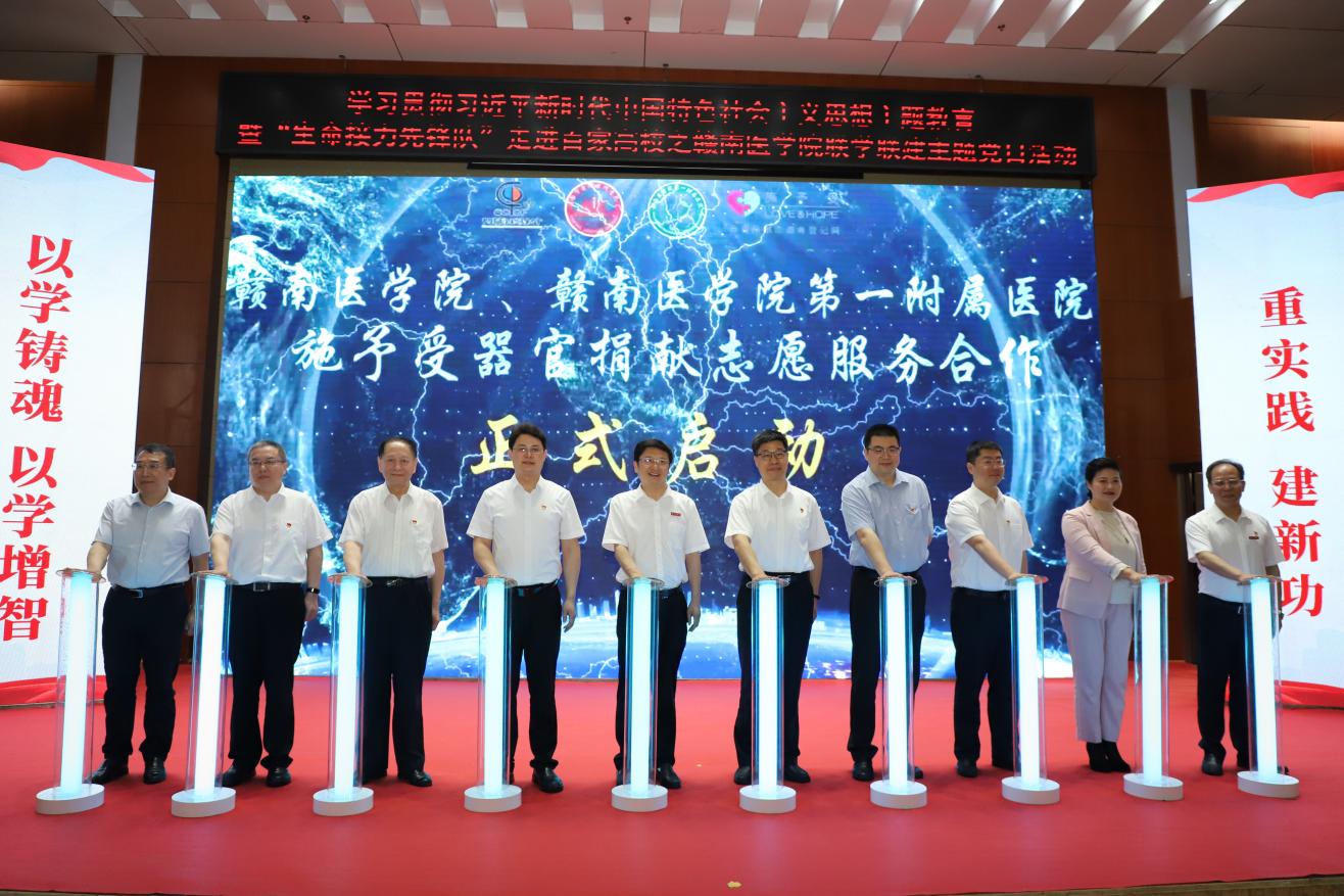 国家卫生健康委党校常务副校长、国家卫生健康委业务主管社会组织党委书记许培海,国家卫生健康委医疗应急司医疗监督处副处长杜冰,中国器官移植发展基金会和中国医学影像技术研究会联合党支部书记、中国器官移植发展基金会理事长赵洪涛,中国器官移植发展基金会秘书长蒲苗,中国市长协会副秘书长、北京爱尔公益基金会理事长杨捷,江西省卫生健康委医政医管处处长李中坚,《医师报》社执行社长兼执行总编辑张艳萍,中国医学影像技术研究会会长周诚,赣州市卫生健康委二级调研员邱伟民,学校党政领导班子成员张小康、曾泽鑫、叶军明、彭维杰、黄海军、廖志平、赖传景出席活动。