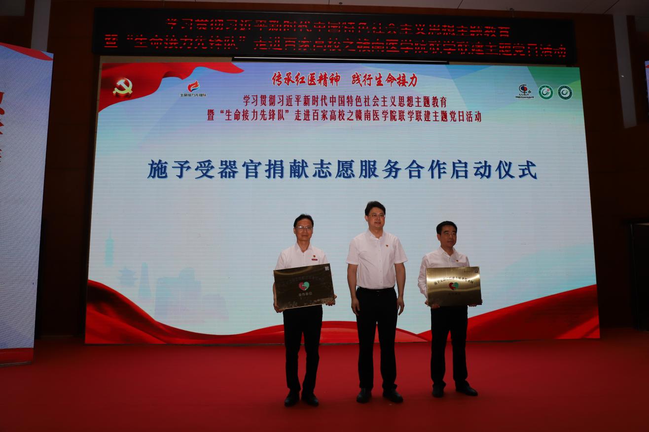 张小康对“生命接力先锋队”来到我校开展联学联建主题党日活动表示热烈欢迎,并介绍了学校发展情况。张小康表示,联学联建主题党日活动,是对“敬佑生命、救死扶伤、甘于奉献、大爱无疆”崇高医师职业精神的生动诠释,是向我校师生传播“生命接力先锋队”党建品牌理念和器官捐献大爱奉献精神,必将大力促进我校主题教育深入开展,有效推动我校党建与业务的深度融合,帮助我校更好地服务区域卫生健康事业发展。我校将以此次活动为契机,充分发挥医学院校专业优势,积极引导更多师生参与到中国器官捐献与移植公益事业的普及与实践中来,努力在全社会树立对器官捐献的正确认识,弘扬大爱无疆的奉献精神,着力打造赣南革命老区器官捐献与移植高地,为更多患者的生命健康保驾护航,推动赣南革命老区器官捐献与移植事业高质量发展。