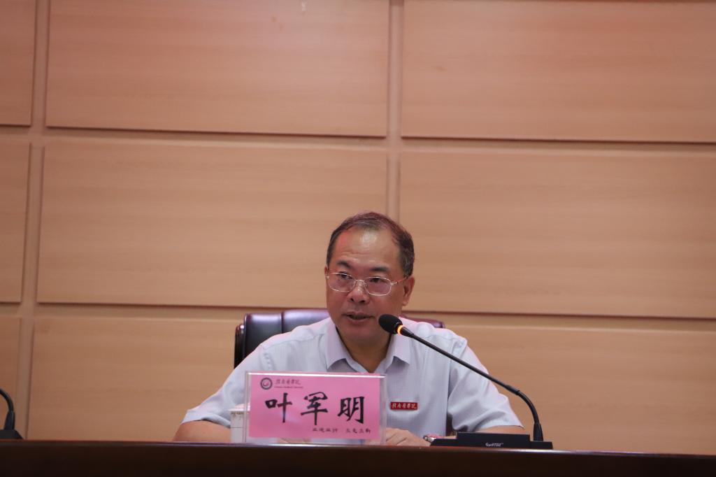 会上,叶军明充分肯定了学校办公室系统近年来的工作。就做好下一步学校办公室系统各项工作,叶军明强调,要深入学习贯彻党的二十大精神,牢牢把握做好新时代办公室工作的根本要求。做好新时代办公室工作,必须学深悟透党的二十大精神,全校办公室系统要强化使命担当,切实履职尽责,持续推动“服务发展、服务决策、服务落实”工作高质量发展。要把牢政治方向,要坚定理想信念,要站稳人民立场。要对标对表“五个坚持”重要要求,奋力推动全校办公室工作高质量发展。要在“坚持绝对忠诚的政治品格”上书写新华章,坚持用党的创新理论成果凝心铸魂,坚定拥护“两个确立”、坚决做到“两个维护”;要在“坚持高度自觉的大局意识”上担当新使命,以更宽视野建言献策,更优方式督促落实,更高效率统筹协调;要在“坚持极端负责的工作作风”上展现新气象,在办文上尽心尽力,办会上精益求精,办事上一丝不苟;要在“坚持无怨无悔的奉献精神”上提升新境界,练就敬业守责的硬功夫,树立甘于奉献的大情怀,发扬艰苦奋斗的好传统;要在“坚持廉洁自律的道德操守”上树立新形象,不断加强和改进作风,始终自警自省自励,做到公道正派为人处事。要以深入开展主题教育为契机,努力锻造坚强有力的办公室干部队伍。一是坚持以学铸魂,夯实忠诚之基;二是坚持以学增智,提升履职之能;三是坚持以学正风,永守勤廉之本;四是坚持以学促干,凝聚发展之力。
