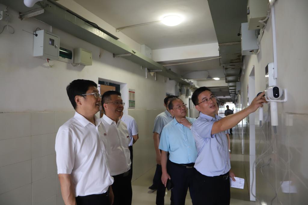 张小康一行来到学生宿舍1栋-6栋,听取宿舍改造有关情况汇报,详细了解宿舍改造进展情况,仔细查看各楼栋和寝室新改造安装的设施设备,以及宿舍消防、安防、值班室建设等,并与已到学校的学生亲切交谈。
