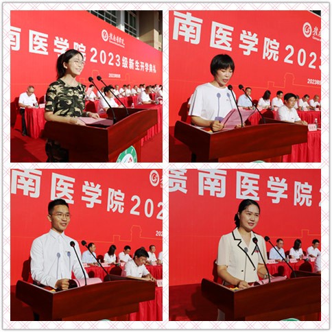 2023级本科生新生代表、第一临床医学院2023级临床医学专业本科13班刘一一,2023级研究生新生代表、公共卫生与健康管理学院2023级公共卫生专业硕士研究生孟玲玲,老生代表、第一临床医学院2019级临床医学专业本科6班赵锐,教师代表、全科医学学院朱韵雅先后发言。