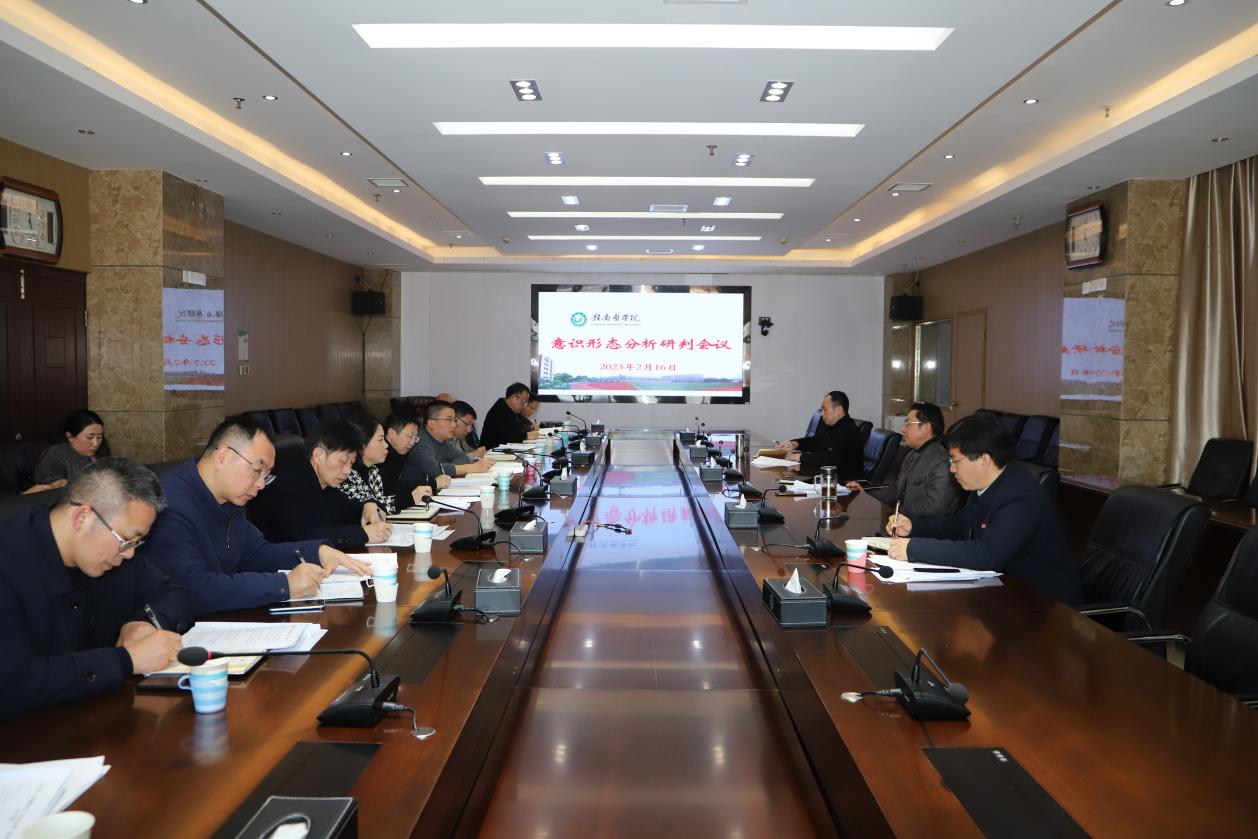 2月16日上午,我校召开思想政治意识形态工作分析研判会,梳理学校意识形态领域有关情况,分析当前意识形态工作面临的形势、存在的不足,统一思想,提高认识,做好风险应对,部署意识形态领域下一步工作任务。