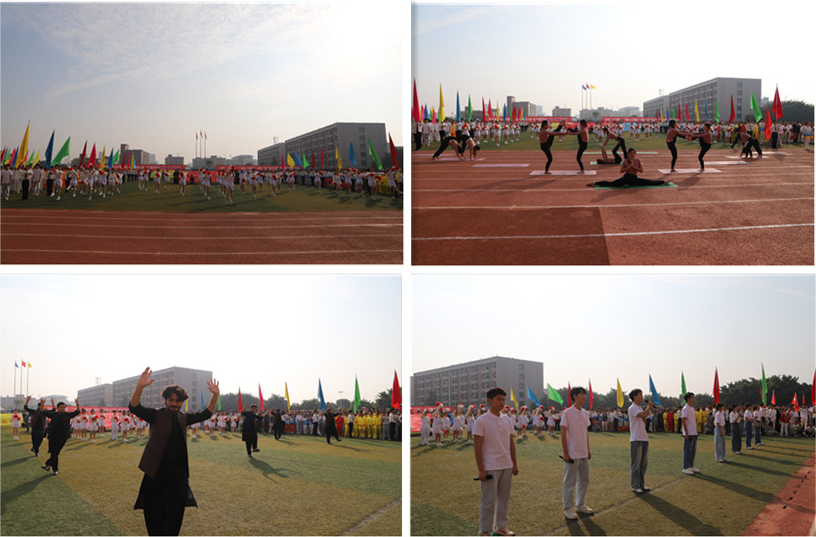 开幕式还进行了瑜伽表演《我爱你中国》、健身操表演、留学生带来的“一带一路”文化展示《丝路风雨》、歌曲表演《强国一代有我在》等,他们精神饱满、充满自信,展示了当代青年大学生蓬勃朝气和青春活力,赢得阵阵掌声。