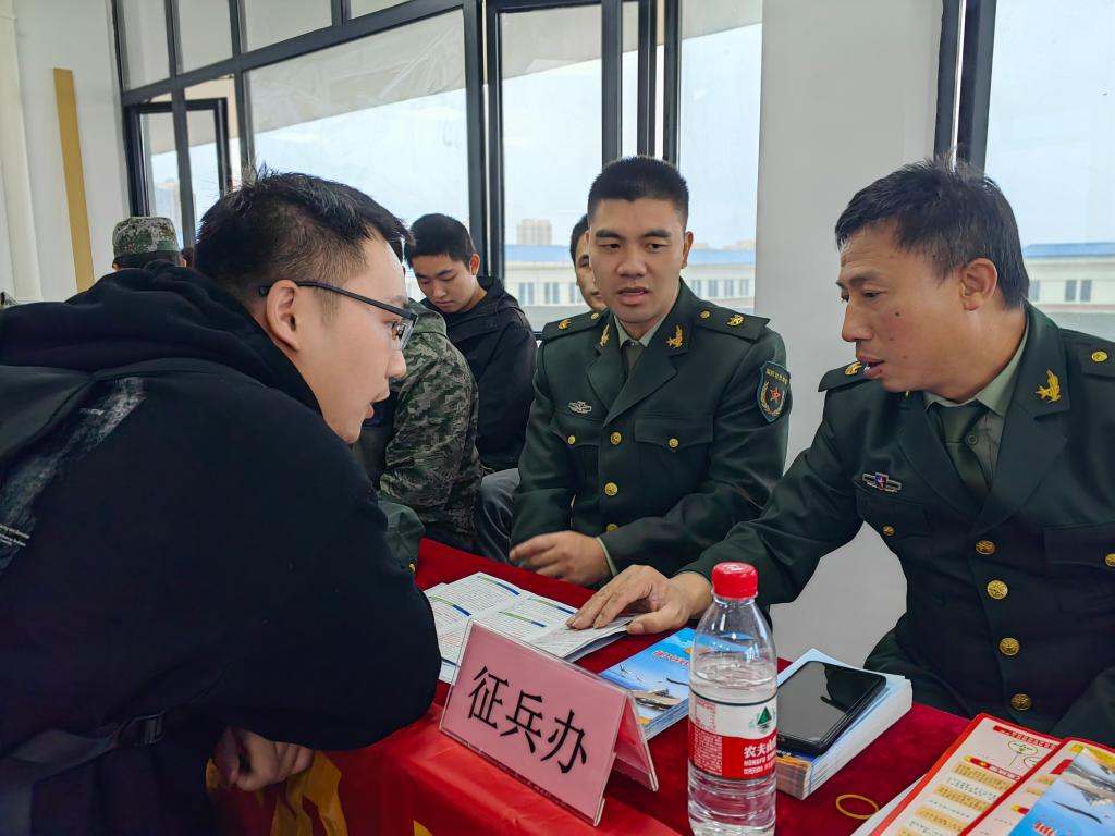 招聘会上,章贡区征兵办和学校人民武装部设立征兵服务站,宣传征兵政策,鼓励2024届毕业生积极应征入伍。征兵办同志现场向同学们发放征兵宣传手册,介绍大学生征兵政策和优惠措施,吸引了很多同学、老师和家长前来咨询,有效提高了大学生国防观念和投笔从戎、献身国防的参军热情。