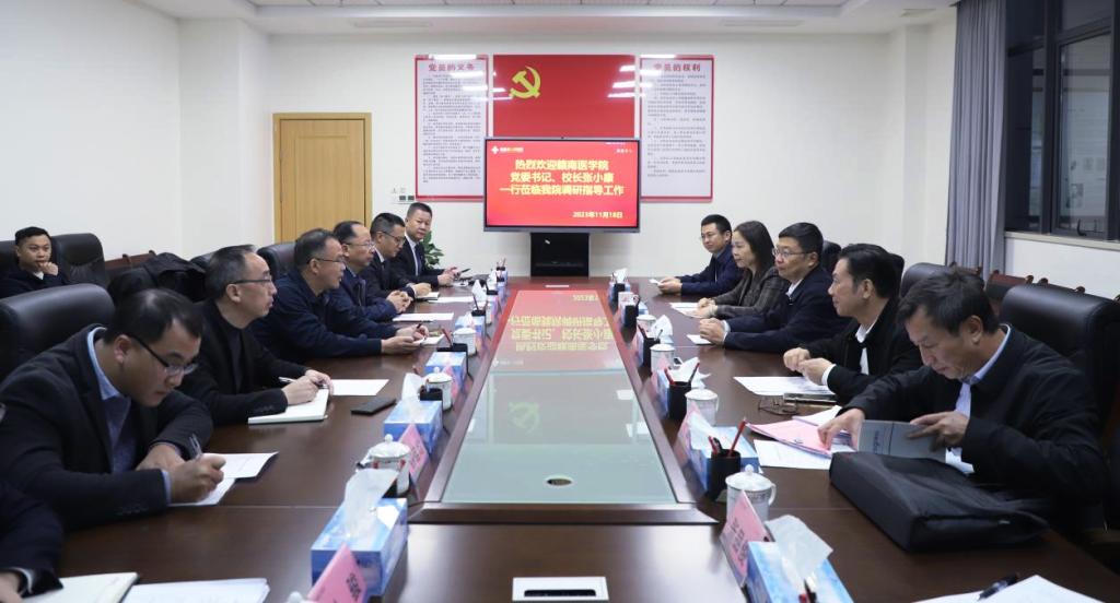 11月18日下午,学校党委书记、校长张小康带队前往会昌县人民医院考察调研教学医院筹建工作,党委副书记曾泽鑫,党委委员、副校长盛瑶环,党委组织部、教务处等部门负责同志随同调研。会昌县委副书记、县长李德伟,县委常委、宣传部部长卢杜林,会昌县卫健党工委书记、主任肖胜平,卫健党工委委员、副主任钟佳均,会昌县人民医院党委副书记、院长郭敏飞等陪同调研。