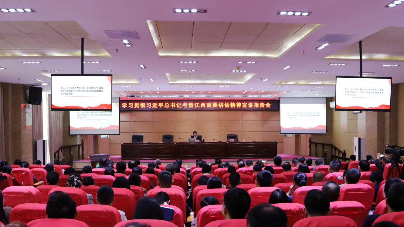 11月24日上午,我校举行学习贯彻习近平总书记考察江西重要讲话精神宣讲报告会,学校宣讲团成员、党委书记、校长张小康作专题宣讲。