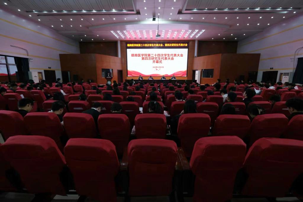11月27晚,赣南医学院第二十四次学生代表大会、第四次研究生代表大会在黄金校区综合楼多功能报告厅召开。