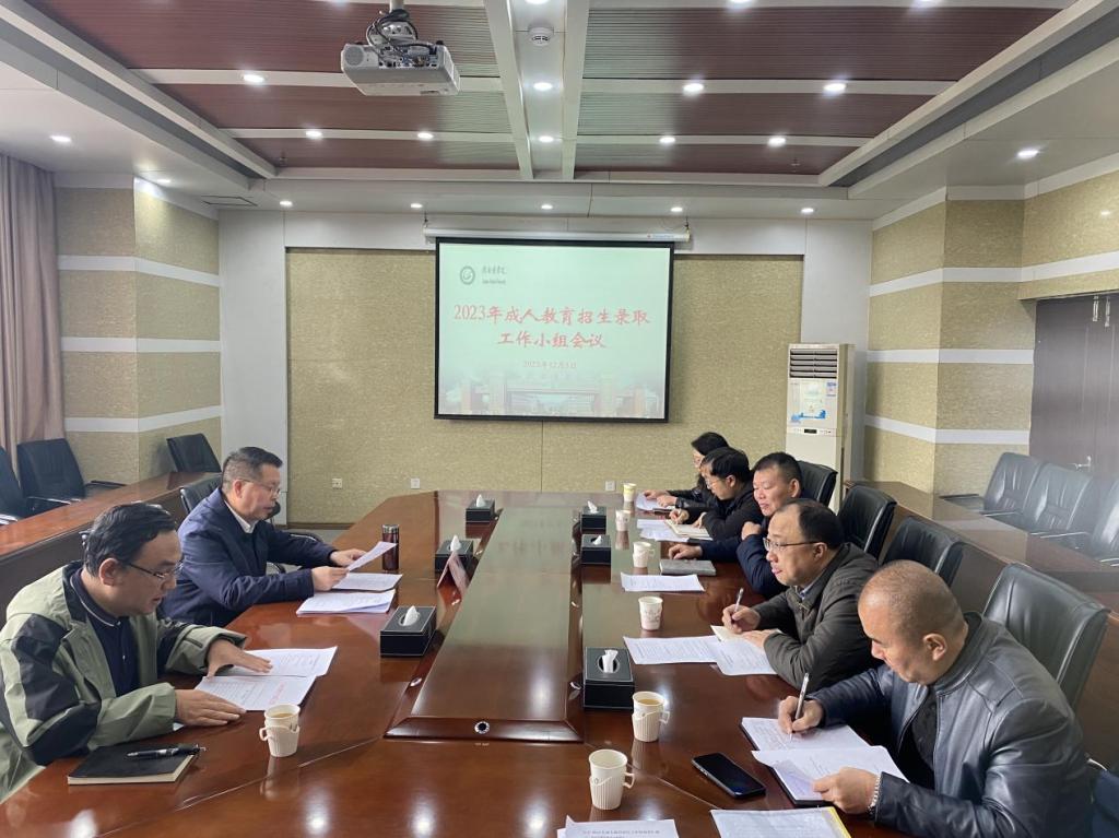 12月5日下午,我校召开2023年成人高考招生录取工作小组会议。党委委员、副校长廖伟出席并讲话,继教学院副院长雷音主持。计划财务处、保卫处、信息技术与网络管理中心相关领导参会。