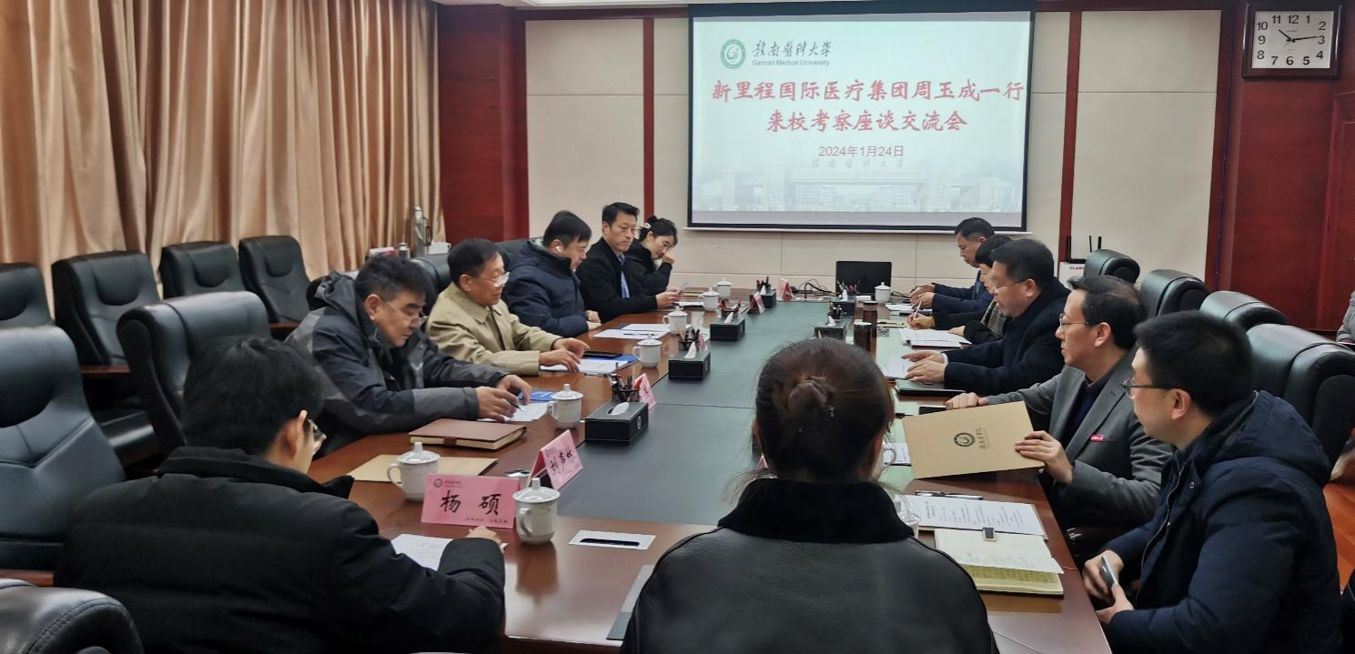 周玉成一行还参观了学校人体生命科学馆。新里程国际医疗集团随同考察的人员还有:总裁杨志宏、新里程质子医疗(无锡)有限公司总裁马杰、投资总监张雅培、投资总监助理刘声林、安永国际投资咨询经理郑炜。赣州卫健委四级高级主管杨硕,学校发规与学科、人事、科研、研究生工作、信工,以及一附院肿瘤科等相关负责同志参加座谈。