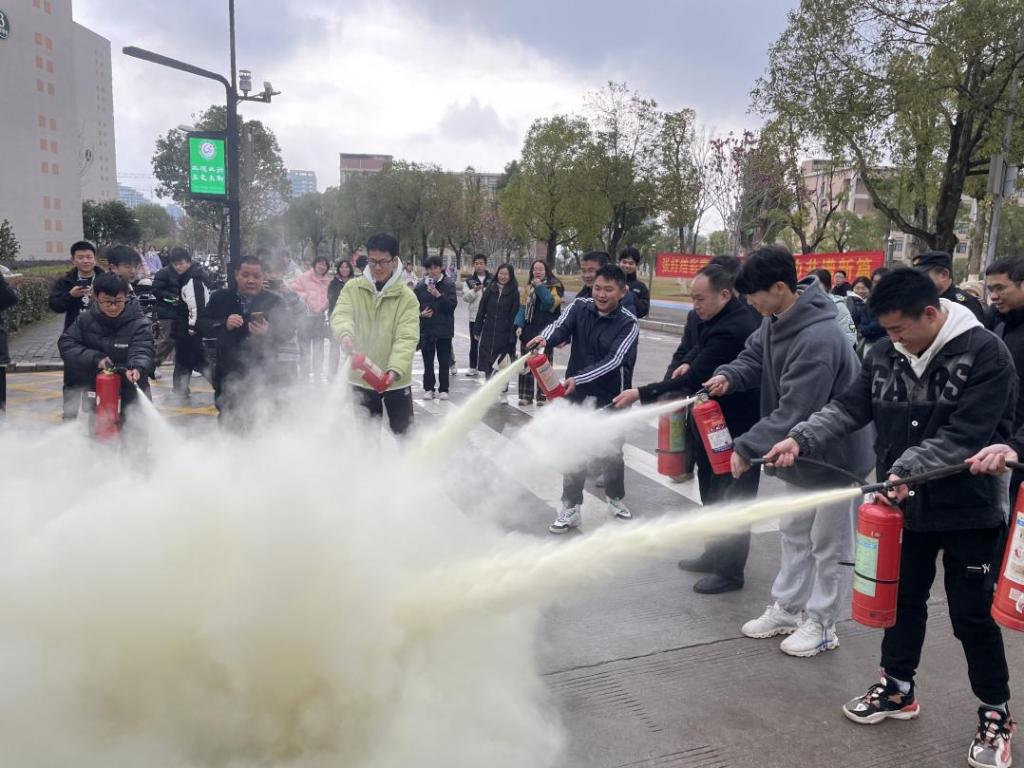 逃生演练结束后,学生工作部(处)组织学生在黄金校区3、4栋宿舍门口空地上开展消防灭火器的使用与实际操作,教授了如何使用灭火器的技巧以及着火时灭火的基本常识,各学院学生代表亲自体验了灭火器的使用方法,做到了人人会使用灭火器。