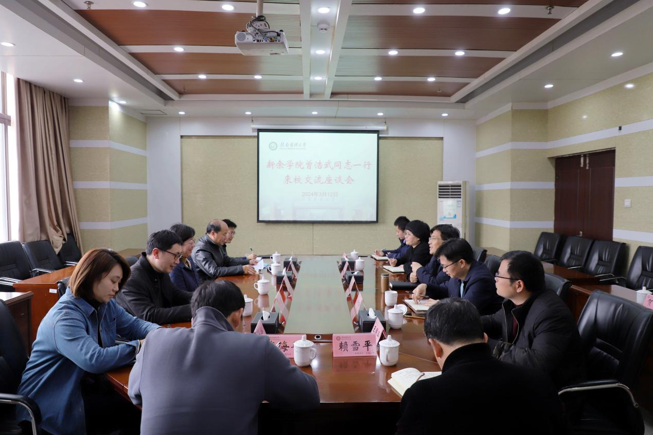 3月12日,新余学院党委委员、宣传部部长曾浩武一行来校交流并座谈。学校党委委员、宣传部部长廖志平出席座谈会。