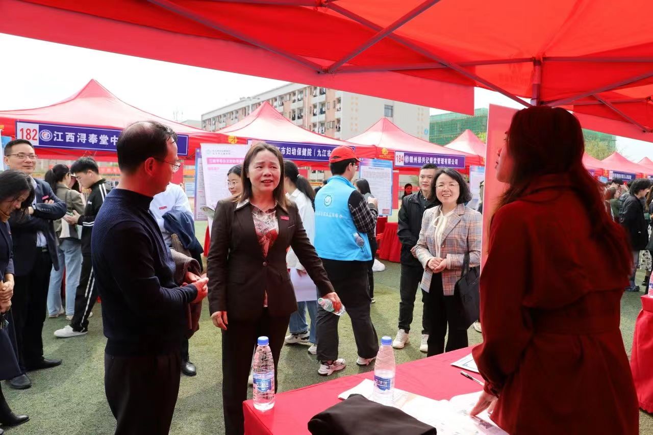 学校领导彭维杰、黄海军、盛瑶环,省就创中心七级职员王为民,赣州市教育局副局长赖小琴、赣州市就业创业服务中心主任隋庆等到现场指导招聘会工作。