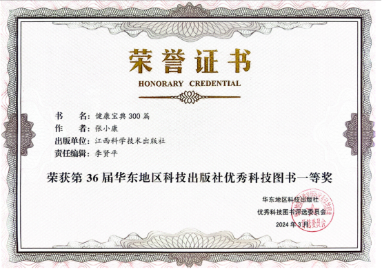 《健康宝典300篇》自出版以来,因内容丰富全面、可读性强,语言通俗易懂,而备受读者关注和喜爱,广受社会各界的好评,曾荣获第二届江西省医学科普能力大赛三等奖、第二届江西省优秀科普作品三等奖,并入选2022年向全国老年人推荐优秀出版物活动推荐书目。