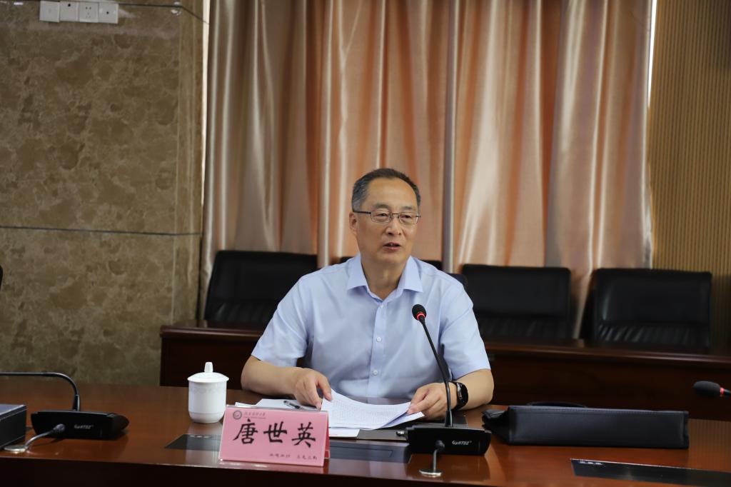 唐世英向我校成功更名大学表示热烈祝贺,并介绍了承德医学院基本情况、发展历史和办学成效。他指出,赣南医科大学长期扎根赣南革命老区办学,为社会输送了众多优秀医学人才,希望以此次考察交流为契机,推动双方在人才培养、内涵建设、学科建设、科学研究等方面深入交流与合作,为促进医学教育高质量发展贡献力量。