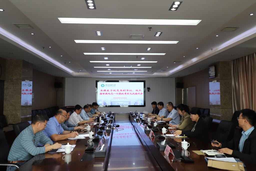 5月8日,承德医学院党委副书记、院长唐世英一行来校考察交流。承德医学院党委常委、副院长李玉红,党委常委、副院长翟玉建随同考察。