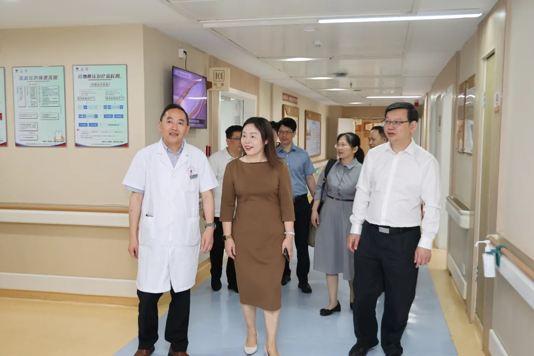 盛瑶环一行参观走访了该院朝阳院区乳腺、内分泌一站式门诊、内外科病区、乳腺疾病江西省重点实验室、数字图书馆等特色区域。在参观过程中,详细听取了医院学科建设、诊疗服务、临床教学、就业等方面介绍,随后开展座谈交流。