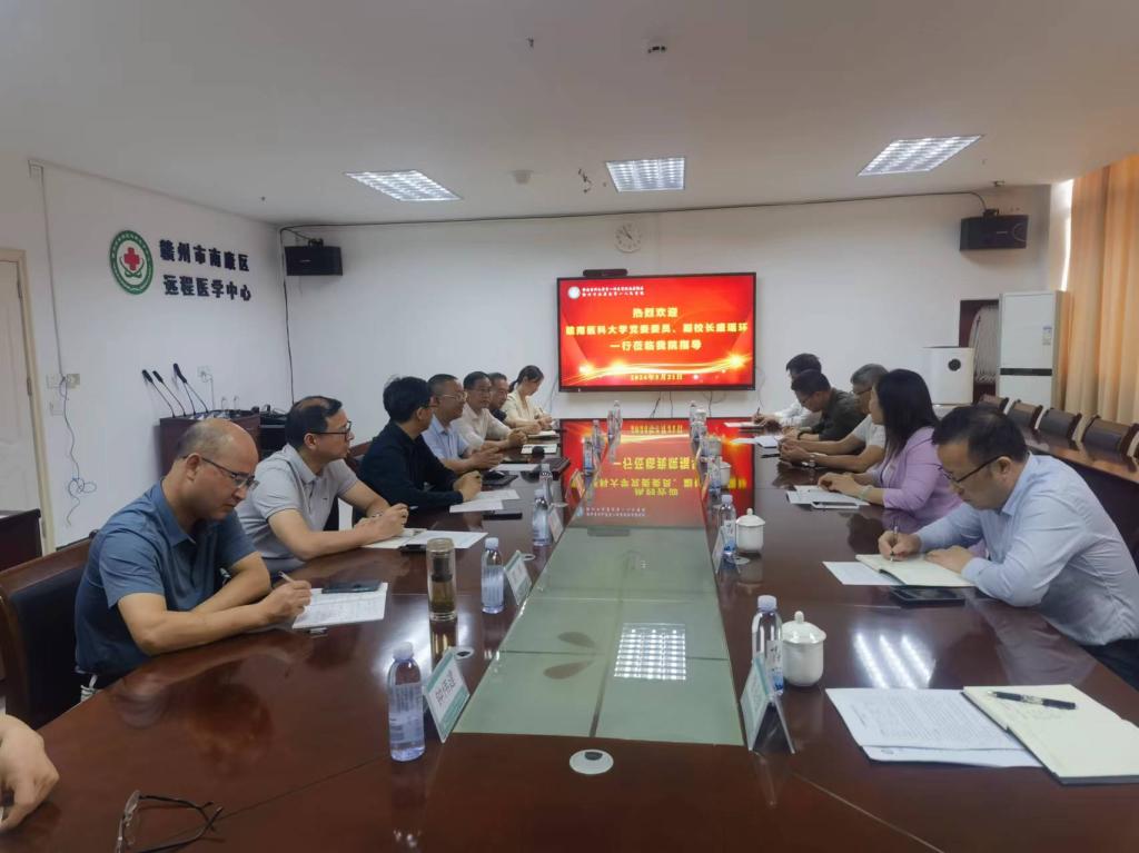 在听取医院汇报后,盛瑶环对南康区第一人民医院在与我校第一附属医院深度合作以来取得的进步表示祝贺。她向医院介绍了学校专业建设、人才培养、临床医学类专业“3+2”教学模式改革等情况。盛瑶环指出教学是医院内涵提升的有效途径,希望医院在医疗、教学、科研方面统筹推进,进一步解放思想,改善条件,积极承担临床医学专业人才培养任务,以教学助推医院高质量发展。