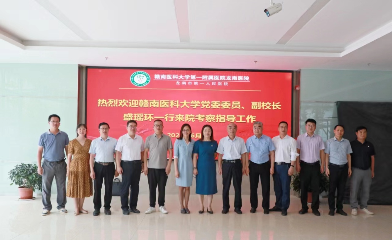 6月7日,赣南医科大学党委委员、副校长盛瑶环带队到学校龙南校区、一附院龙南医院考察调研。龙南市人大常委会二级巡视员廖小波、龙南市卫健委主任胡圣文、龙南市龙南镇党委副书记、镇长廖良毅等陪同调研。