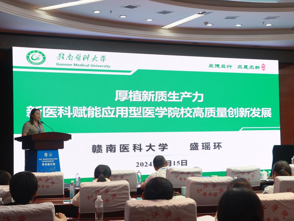 我校党委委员、副校长盛瑶环受邀出席大会,并作题为《厚植新质生产力 新医科赋能应用型医学院校高质量创新发展》的主旨报告。她向与会代表介绍了学校概况,围绕新质生产力发展和国家发展新阶段对人才培养提出新需求,聚焦学校新医科引领“四创二融”人才培养体系的经验和做法,展示了学校在教师教学水平、课程和专业建设、人才培养质量等方面取得的育人成效。