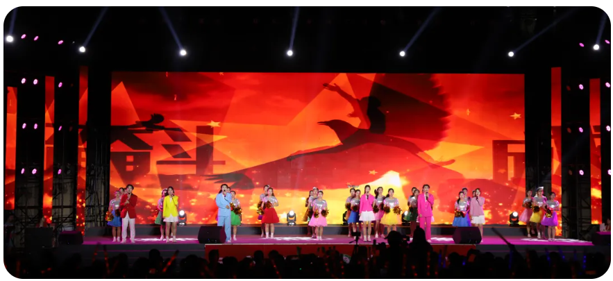 在晚会最后,现场师生共同唱响《歌唱祖国》。百年征程,波澜壮阔。赣医大师生自信自强、守正创新、踔厉奋发、勇毅前行,深入实施“高质量发展三年行动计划”,为把学校建设成为特色鲜明、区域一流、国内知名的高水平医科大学不懈奋斗!