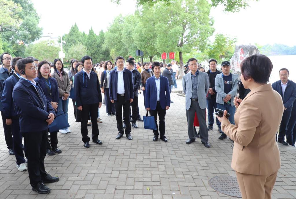 10月27日上午,出席中国卫生健康思想政治工作促进会医学教育科研分会2024年年会暨红医文化研讨会的与会人员,怀着崇敬之心,一同前往于都的中央红军长征出发地纪念园开展现场教学活动。