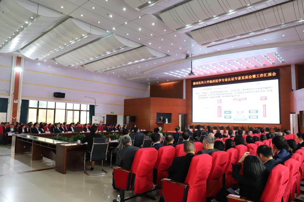 专家组组长,中国医科大学终身教授、原副校长孙宝志,专家组副组长、汕头大学医学院原执行副院长杨棉华,专家组成员田京、朱俊勇、李岩、徐凌霄、卿平、钱文溢、李子怡,省教育厅二级巡视员雷杰华,赣州市委常委、市政府副市长王建冬,学校党委书记、校长张小康以及党政领导班子成员黄瑞忠、廖伟、叶军明、彭维杰、盛瑶环、廖志平、赖传景、徐华平出席专家见面会、汇报会。学校党委副书记黄瑞忠主持专家见面会。
