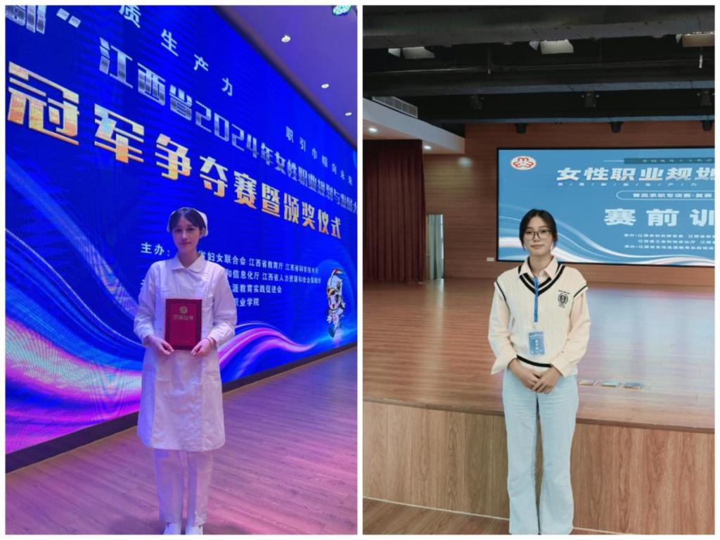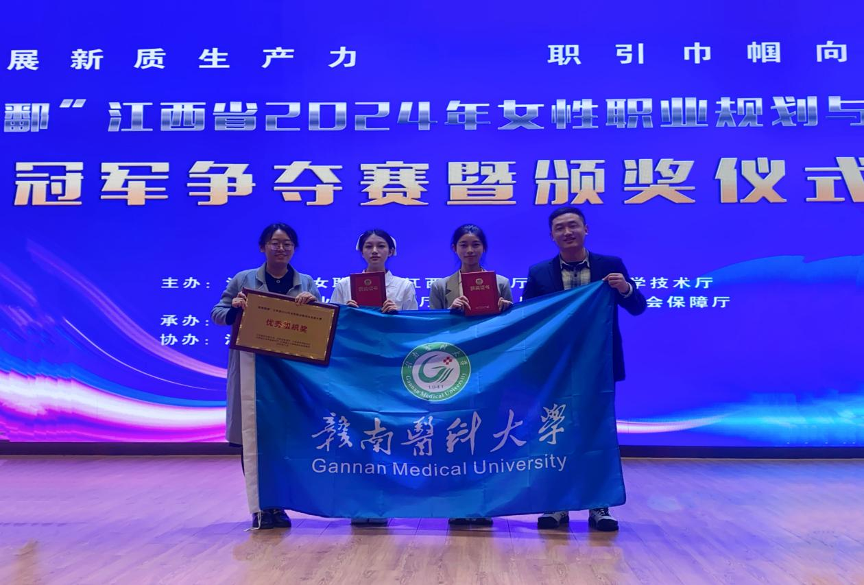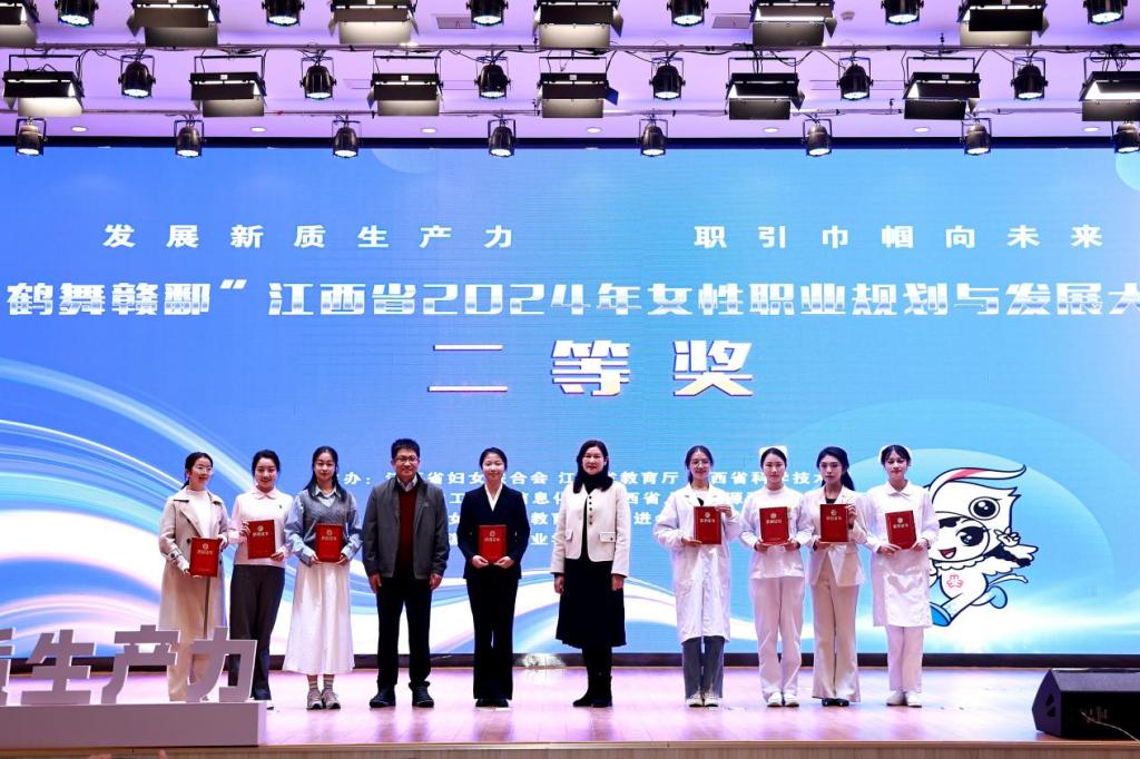11月24日,“鹤舞赣鄱”江西省女性职业规划与发展大赛冠军争霸赛暨颁奖仪式在江西旅游商贸职业学院举行,副省长张莹出席并为获奖选手颁奖。我校护理学院范嫣然、第一临床医学院宋承桂在大赛中一路过关斩将,分别取得高教组二等奖、三等奖的优异成绩,学校获得优秀组织奖。