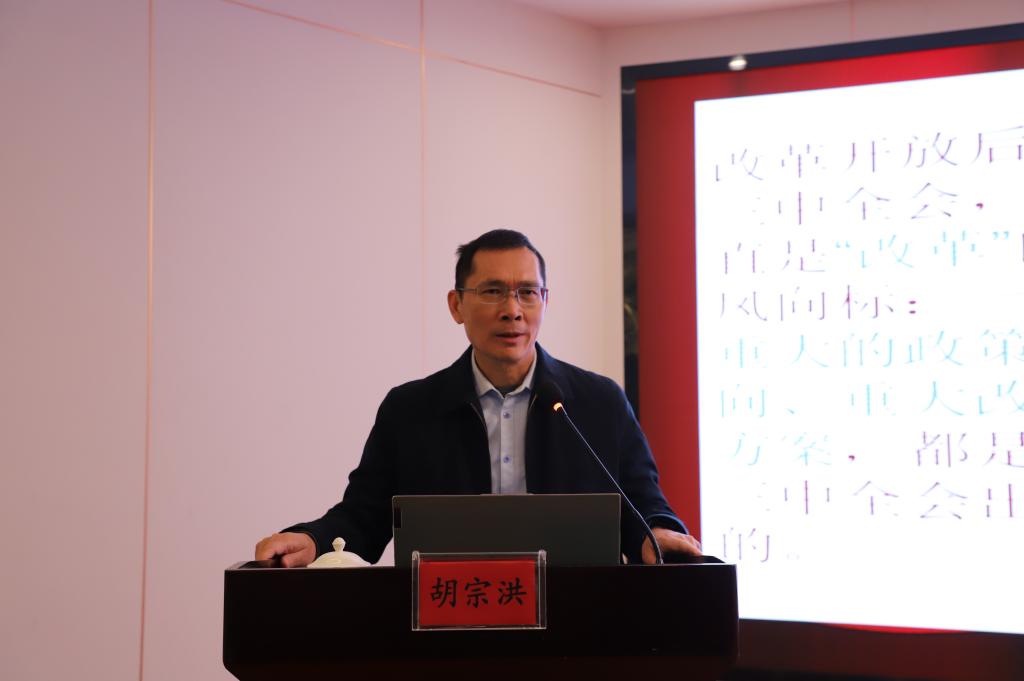 赣州市委党校经济学教研室主任、教授胡宗洪以《进一步全面深化改革,开辟中国式现代化广阔前景》为题,从深刻把握进一步全面深化改革的重大意义、深刻把握进一步全面深化改革的总体部署、深刻把握进一步全面深化改革的重大举措三个方面,对党的二十届三中全会精神进行了系统讲解和深入阐述。