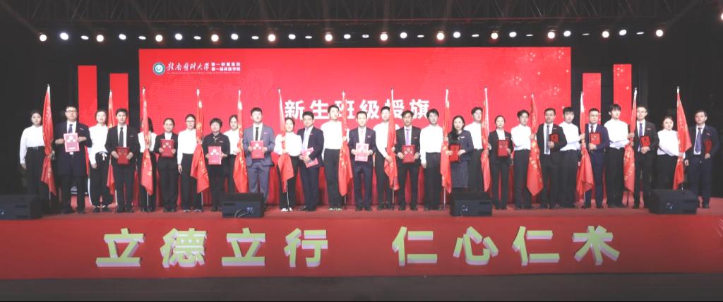 教师代表、超声医学科副主任陈卫华,家长代表张永通,研究生代表梁炉文和本科生代表孙楠分别发言。会上还举办了新生班主任聘任仪式,各班主任为新生班级送上寄语并授班旗。