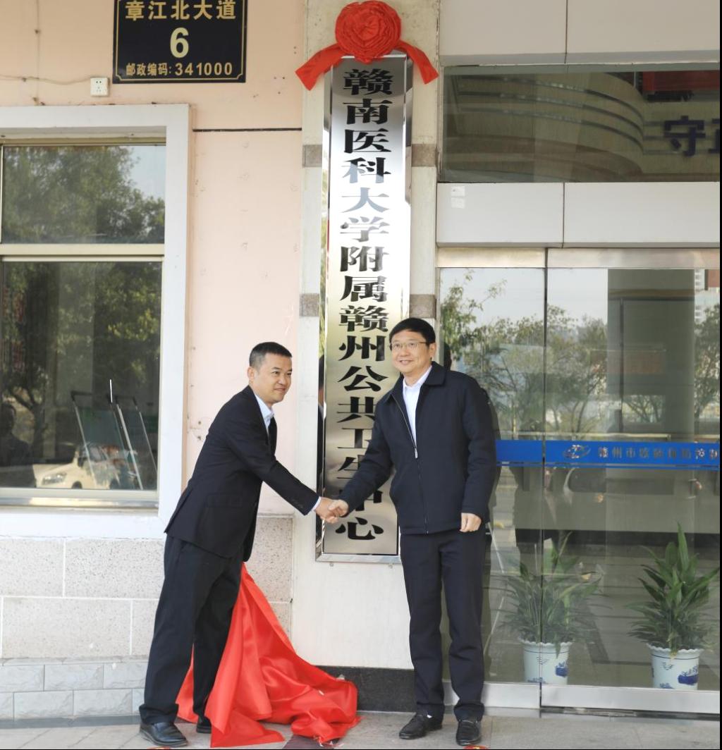 1月15日上午,赣南医科大学附属赣州公共卫生中心揭牌仪式在赣州市疾病预防控制中心举行。学校党委书记、校长张小康,赣州市疾病预防控制局局长赵乘明出席仪式并共同为赣南医科大学附属赣州公共卫生中心揭牌。