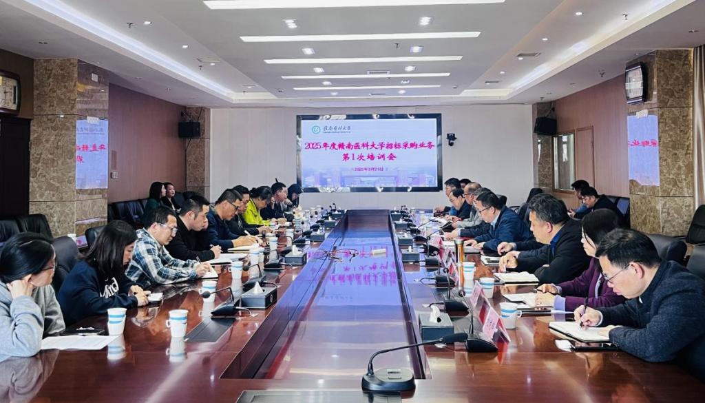 3月21日下午,学校2025年度招标采购业务第1次培训会在黄金校区综合办公楼401会议室召开。学校党委委员、副校长黄孝天出席并讲话,会议由招标采购办公室主任梁建明主持。