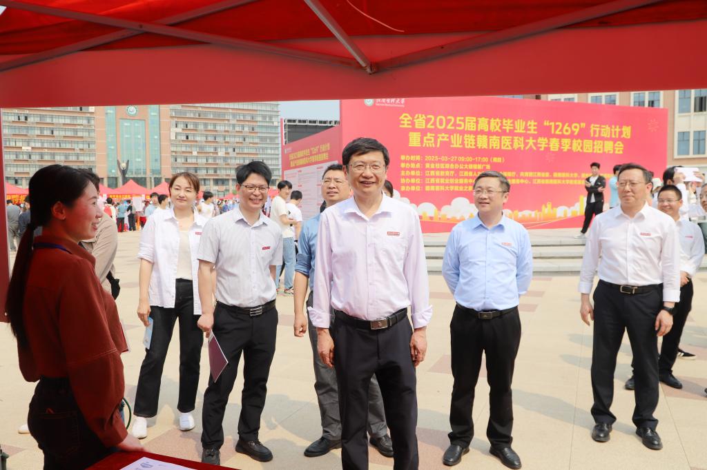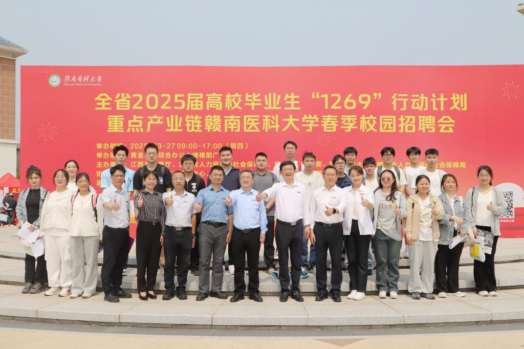 为深入贯彻落实党中央、国务院 “稳就业、保就业” 决策部署,全力促进高校毕业生高质量充分就业,3月27日,我校在黄金校区综合办公大楼楼前广场举办全省2025届高校毕业生“1269”行动计划重点产业链赣南医科大学春季校园招聘会。