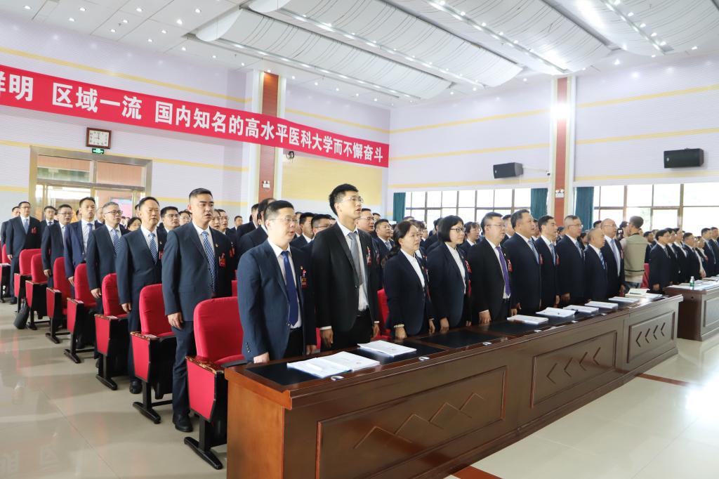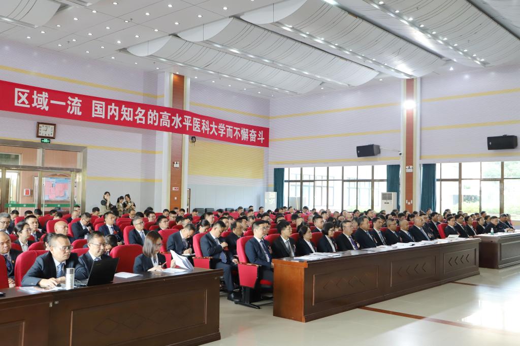 大会号召,全校上下要高举习近平新时代中国特色社会主义思想伟大旗帜,更加紧密地团结在以习近平同志为核心的党中央周围,守正创新、勇毅前行,为建设特色鲜明、区域一流、国内知名的高水平医科大学而不懈奋斗!