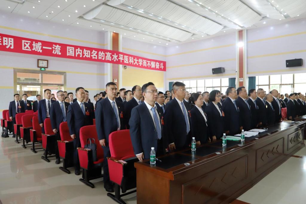大会号召,全校各级党组织和广大党员要始终高举习近平新时代中国特色社会主义思想伟大旗帜,更加紧密地团结在以习近平同志为核心的党中央周围,守正创新、勇毅前行,为建设特色鲜明、区域一流、国内知名的高水平医科大学而不懈奋斗!