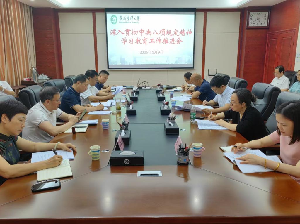 5月9日,我校召开深入贯彻中央八项规定精神学习教育工作推进会,学校党委副书记黄瑞忠出席并讲话,党委常委、组织部部长徐华平主持会议。