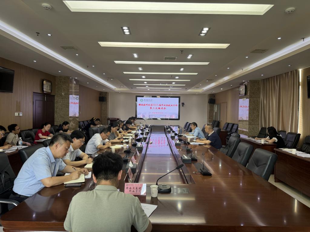 5月14日,我校召开2025届毕业生就业工作第三次推进会,传达学习5月13日教育部2025届全国高校毕业生就业重点工作推进会会议精神,推进落实我校2025届毕业生就业重点工作。学校党委委员、副校长黄孝天出席并讲话,招生与就业管理处处长黄春平主持会议。学校各二级学院分管就业工作负责同志、就业联络员,招生与就业管理处全体人员参加会议。