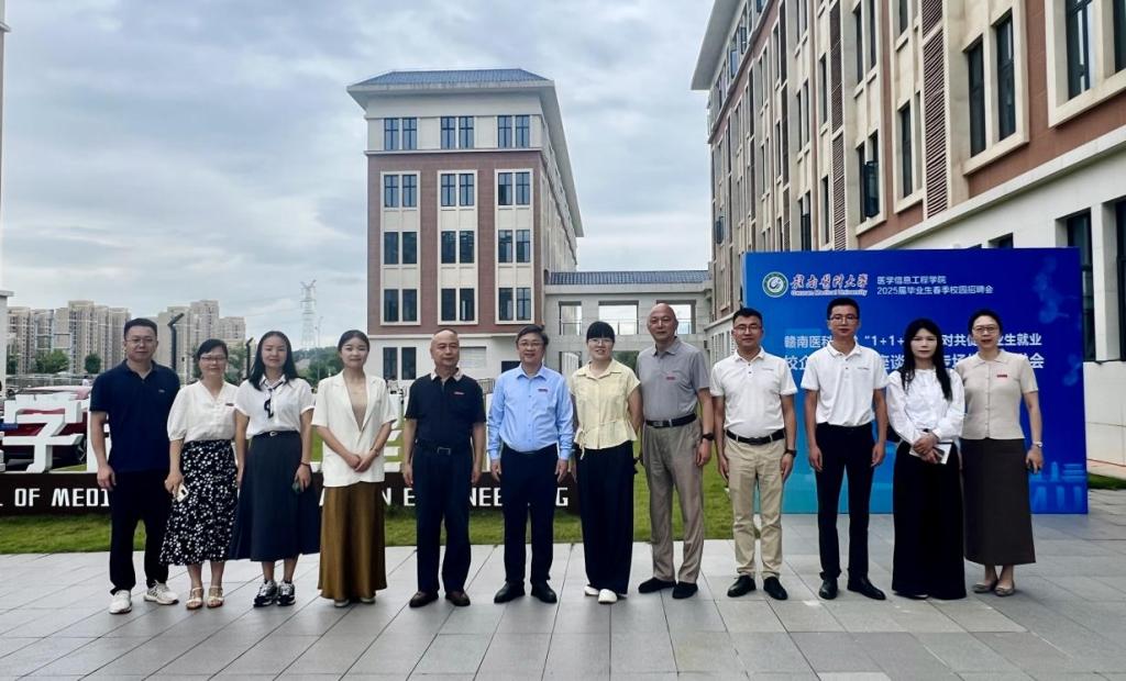 为持续推进高校、政府、企业结对促就业工作,促进高校毕业生就业需求与企业岗位精准对接。5月19日上午,医学信息工程学院邀请赣州市章贡高新区管委会相关负责人,以及江西厚植生物药业、江西医为特科技、江西山形环保能源集团与河南驼人医疗器械集团等企业来校开展“‘1+1+N’结对共促毕业生就业校企供需对接座谈会与专场招聘”活动。